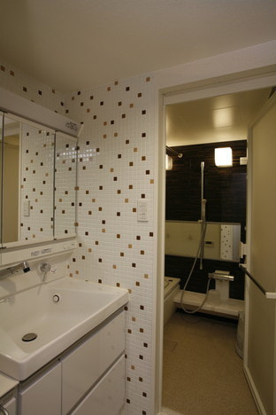 洗面台を新しくし、壁をモザイクタイルに変更致しました。水ハネ等のお手入れが楽になります。