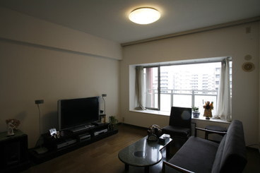 左側の棚の奥行きを、隣の部屋の洋室の奥行きとして使用し、バスタオルを干すスペースを作りました。